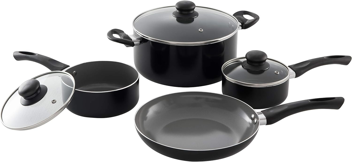 7 Piece Aluminum Non-Stick Dishwasher Safe Cookware Set, Pots and Pans, Black