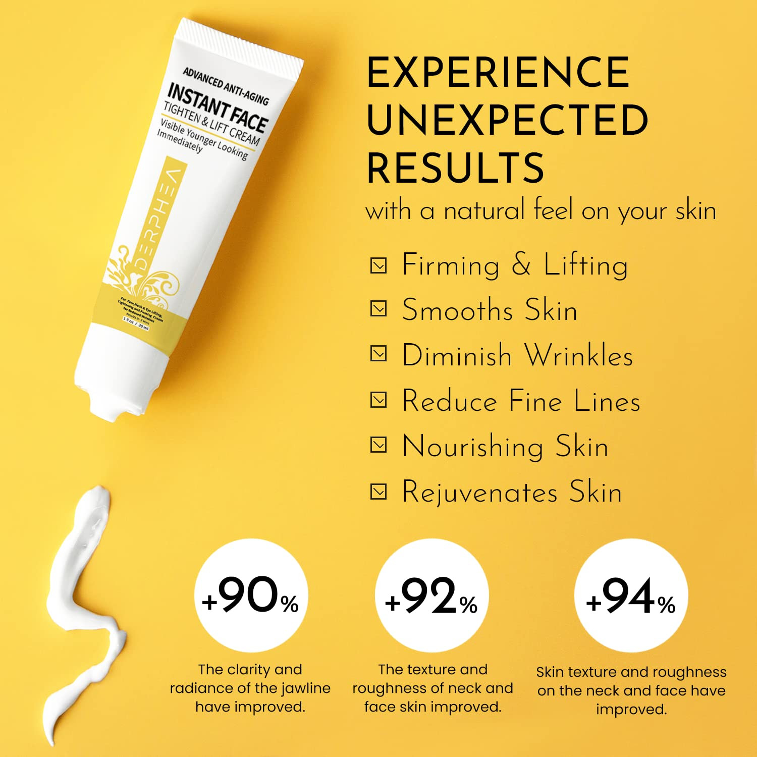 Use Widely - Our instant face lift cream is also suitable for under eyes, forehead, face, cheek, neck, belly, and more. It helps sagging skin, facial wrinkles, expression lines, crow lines, and more, wrinkle cream for face.