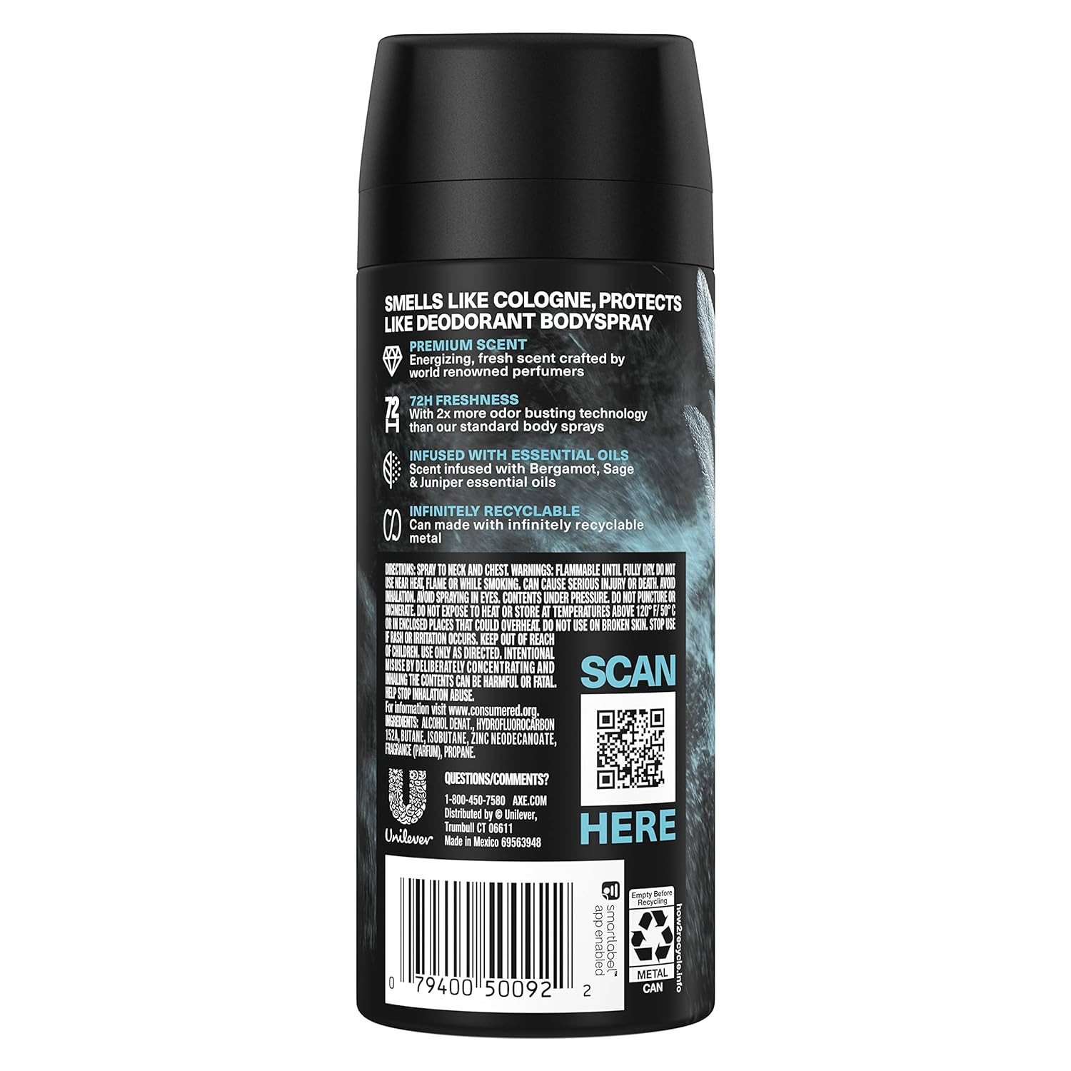 AXE Fine Fragrance Collection Premium Deodorant Body Spray for Men Aqua Bergamot 3 Count with 72H Odor Protection and Freshness Infused with Aqua, Bergamot, and Sage Essential Oils 4 oz