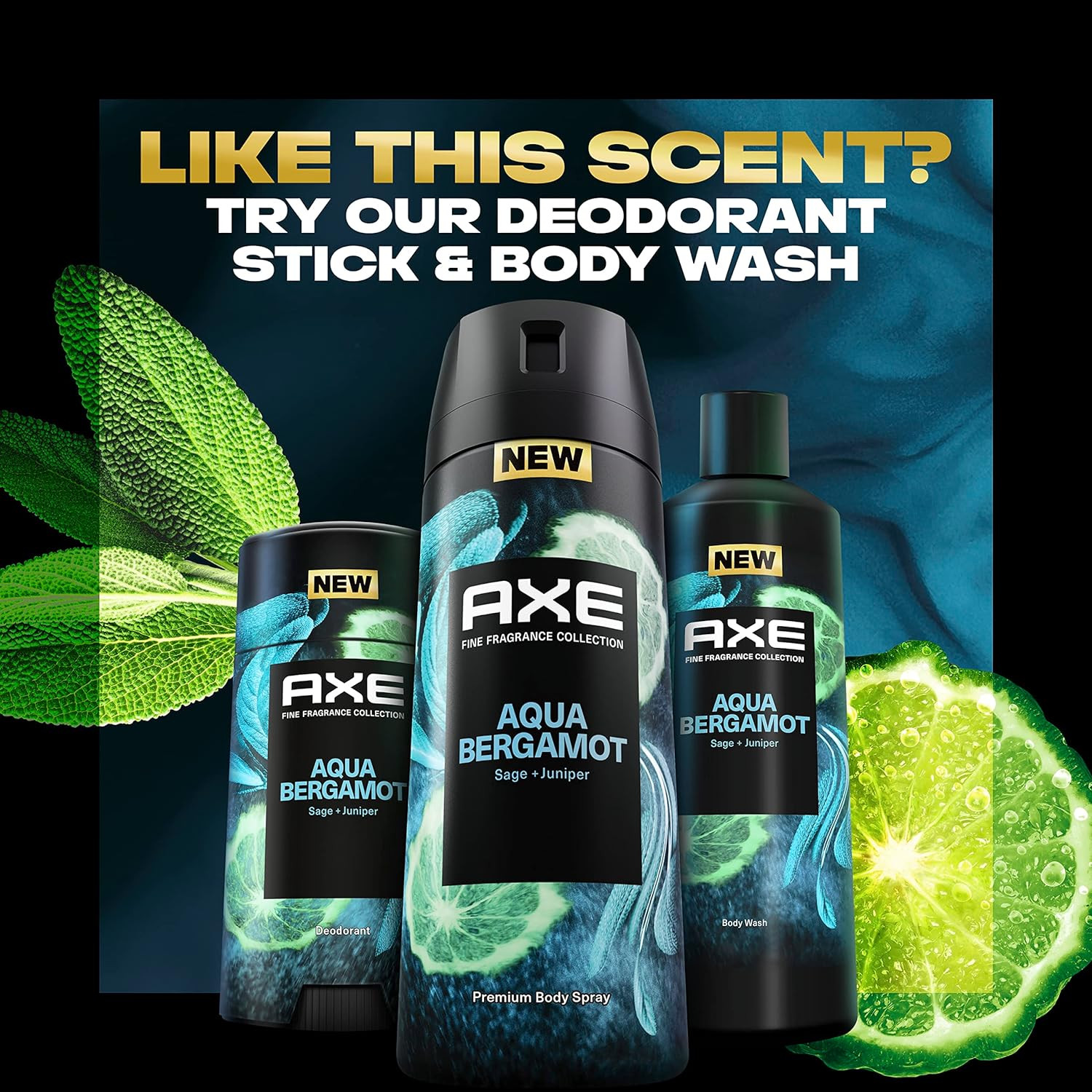 Liking Aqua Bergamot Deodorant Body Spray's refreshing blend of bergamot, sage, and juniper? Check out AXE Fine Fragrance Collection Aqua Bergamot Deodorant Stick and Aqua Bergamot Body Wash to stay fresh as ever
