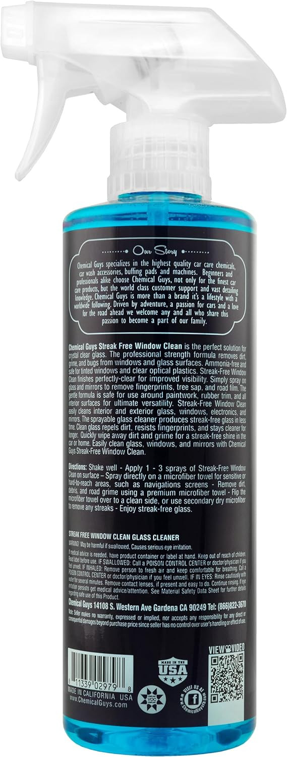 Chemical Guys CLD30016 Streak Free Glass & Window Cleaner (Works on Mirrors, Navigation Screens & More; Car, Truck, SUV and Home Use), Ammonia Free & Safe on Tinted Windows, 16 fl oz