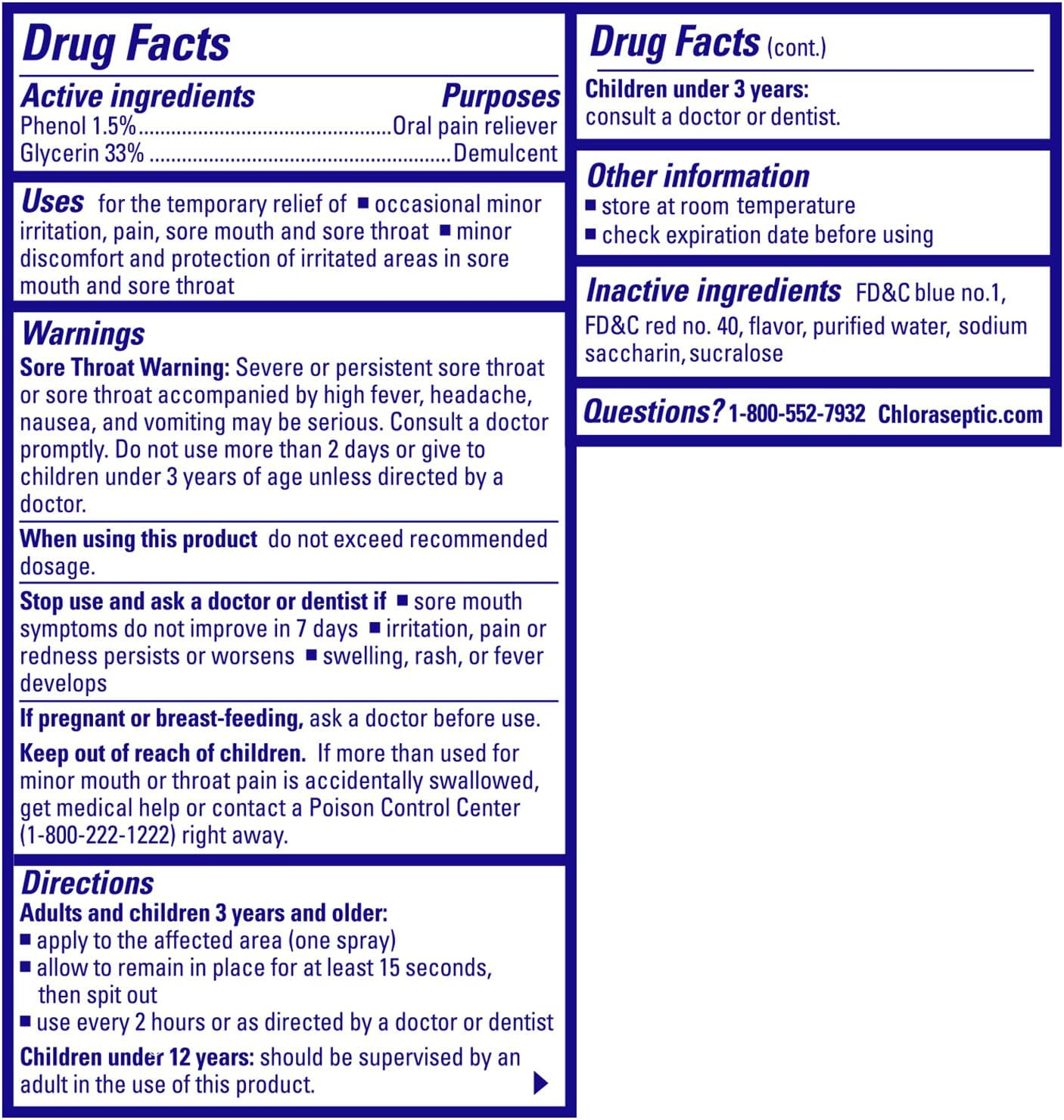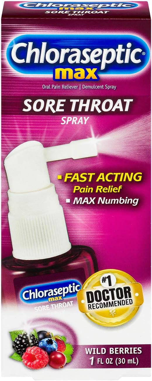 The Best Doctor-Recommended Sore Throat Spray* is Chloraseptic. You may get quick relief from sore throats in a range of flavors with Chloraseptic Sore Throat Lozenges & Sprays, a brand that has been helping people with sore throats for over 55 years. Because Chloraseptic Max Strength Sore Throat Spray has the maximum permitted dosage of benzocaine, it offers targeted, quick-acting sore throat numbing relief through an easy-to-control sprayer. There are several varieties of Chloraseptic Sprays, including Citrus, Cherry, Warming Honey Lemon, Wild Berries, and Menthol. Both sugar and aspirin are absent from this product. Suitable for usage with both adults and kids three years of age and up. And try Chloraseptic Sore Throat Lozenges for relief while you're on the go! *IQVIA, from June 1, 2018, to May 31, 2019, utilizing the ProVoice Survey.