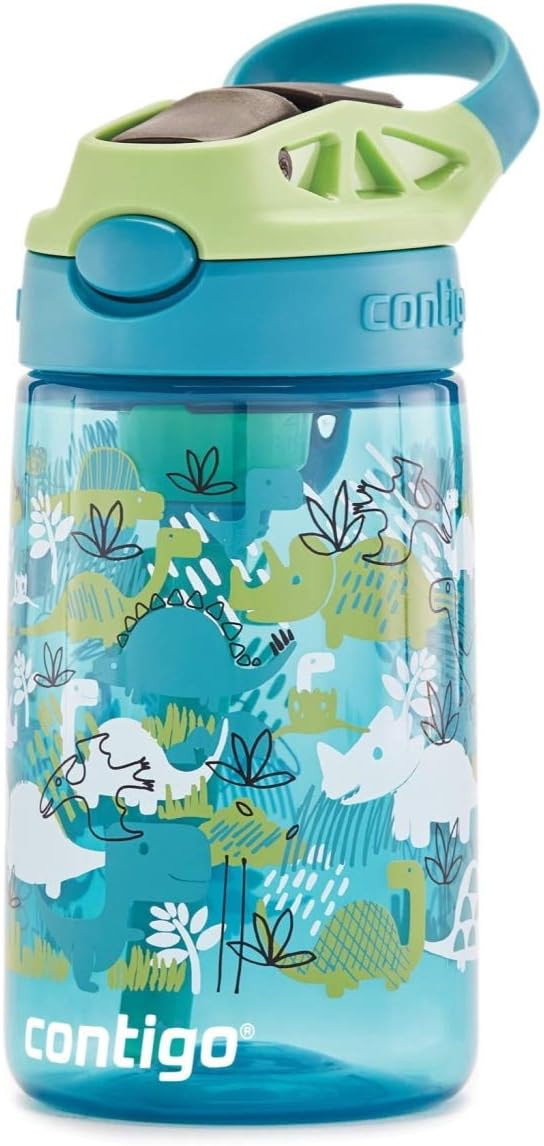 Contigo Kids Water Bottle, 14 oz with Autospout Technology – Spill Proof, Easy-Clean Lid Design – Ages 3 Plus, Top Rack Dishwasher Safe – Dinos