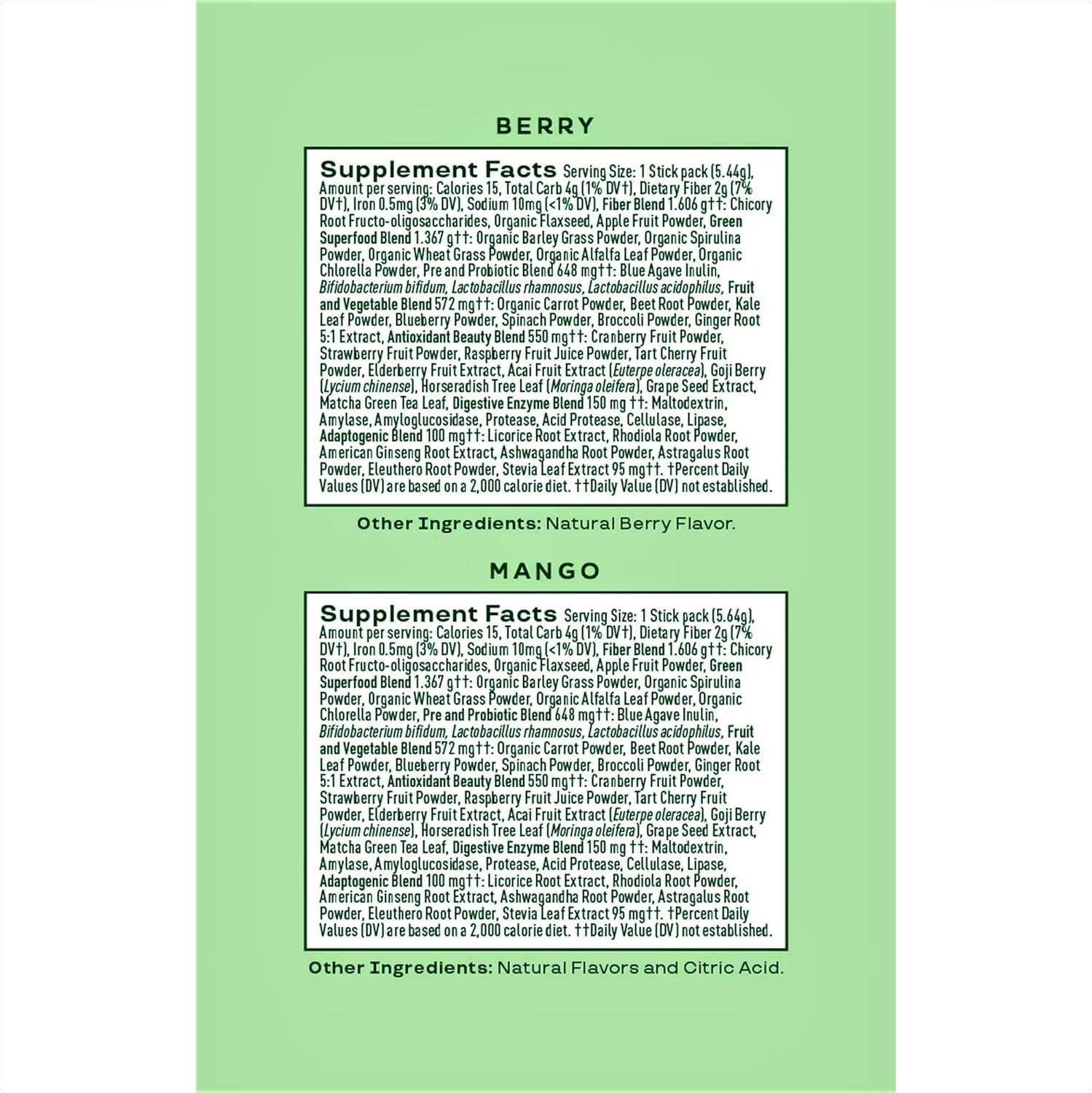 Our Mango Berry Superfood Powder Sticks, which come in a handy 10-count bag, will improve your everyday diet. Completely loaded with nutrient-dense greens and bursting with delicious mango and berry taste, these powder sticks are the ideal complement to any wellness regimen. Strong antioxidants in every stick provide immunological support and a natural energy boost. To quickly and easily provide your body with vital vitamins and minerals, just combine a stick with water or your preferred beverage. These superfood powder sticks match your busy lifestyle, whether you're at home or on the road. With this nutrient-rich blend, you may improve your general well-being and incorporate wellness into your everyday routine. Take a look at our Mango Berry Superfood Powder Sticks now.