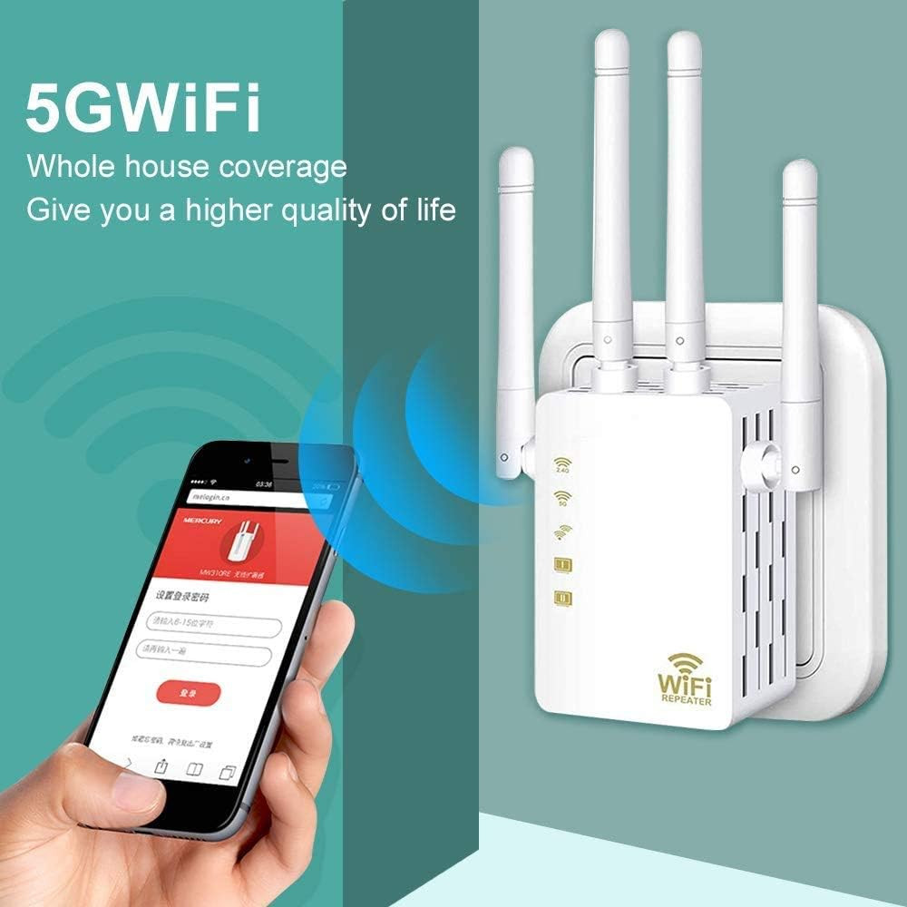 WiFi Extender - WiFi Repeater, WiFi Booster Covers Up to 2500 Sq.ft and 30 Devices, Up to 1200Mbps Dual Band WiFi Repeater with Ethernet Port, Wireless Signal Booster for Home.