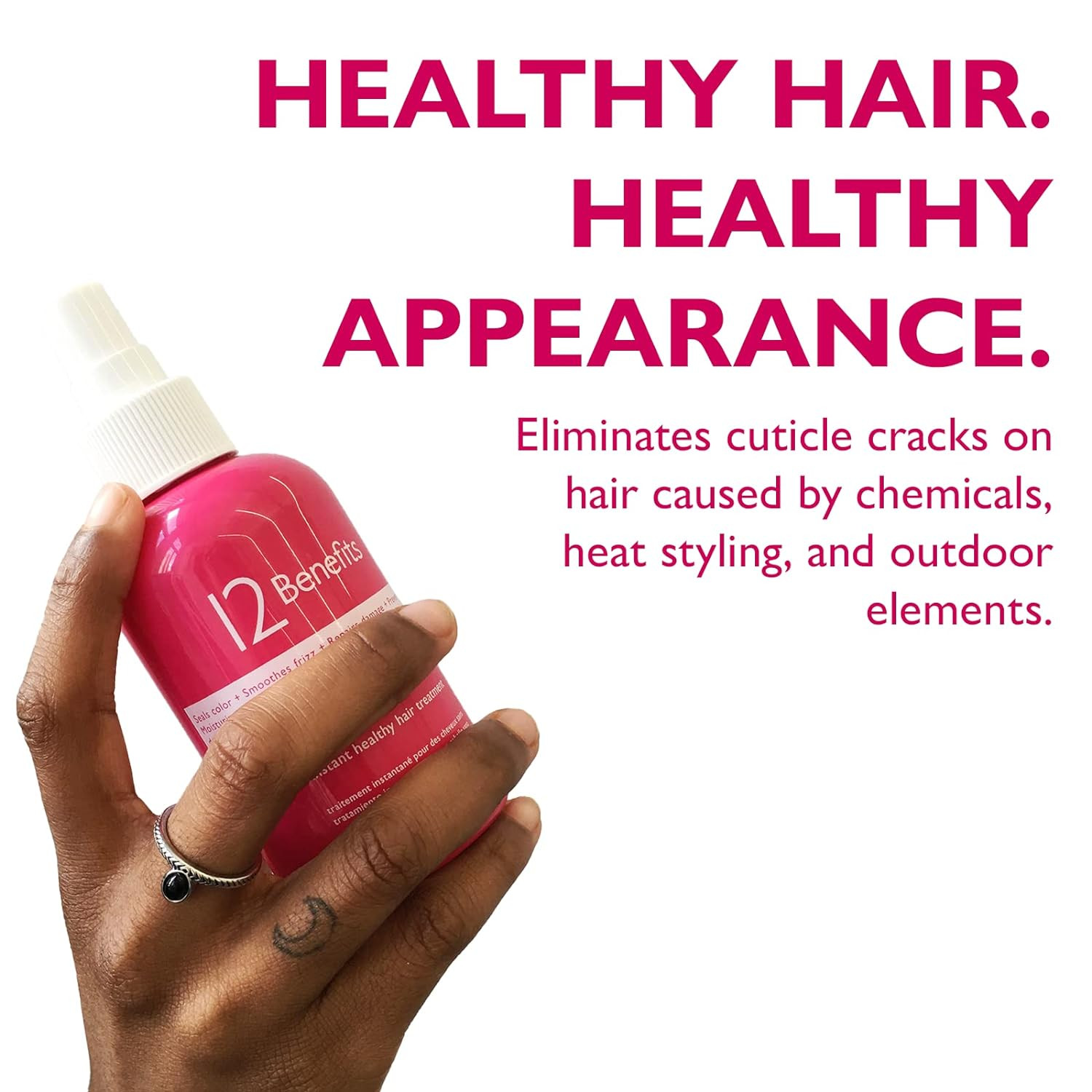 12 Benefits Instant Healthy Hair Treatment - Leave In Conditioner Spray with Quaternium 39 and Silk Fibre Protein - Smooths Frizz, Strengthens & Repairs Damaged Hair - Made in the USA, (6 Fl Oz)