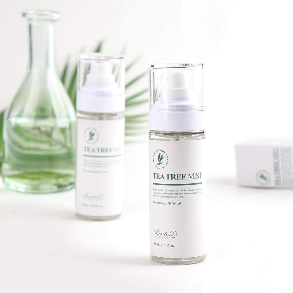 Benton Tea Tree Mist comes in a vacuum-sealed container that cannot be opened with just one's hands. This ensures minimal air contact and prevents oxidization. Benton Tea Tree Mist does not contain any flammable gas, such as LPG, so there is no risk of skin irritation, and it can be used on a daily basis anywhere, including aircraft cabins. The mist also sprays more evenly than the previous mist, minimizing lumps in the nozzle.