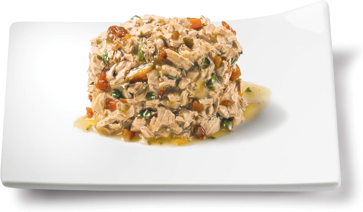 Primavera-style chicken recipe with garden vegetables and greens in a traditional sauce. Made with real, high-quality chicken, this adult cat food is 100% complete and balanced. Professionally prepared recipes that your cat will enjoy