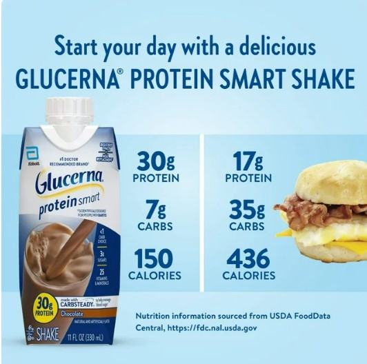 Glucerna Protein Smart nutrition shakes are scientifically designed to help people with diabetes manage blood sugar.*Our protein shakes have CARBSTEADY, unique blends of slow-release carbohydrates, as well as 30g of high-qualityprotein to support muscle health. Glucerna Protein Smart also contains nutrients for immune system support, likevitamins A & D, zinc, and antioxidants (vitamins C & E). They make delicious grab-and-go meal or snack replacements.†Gluten-free and suitable for lactose intolerance, and not for people with galactosemia. Glucerna is the #1 nutritionbrand recommended by doctors for people with diabetes.* Designed to help minimize blood sugar spikes compared to high-glycemic carbohydrates.† Replace one poor meal or snack choice.
