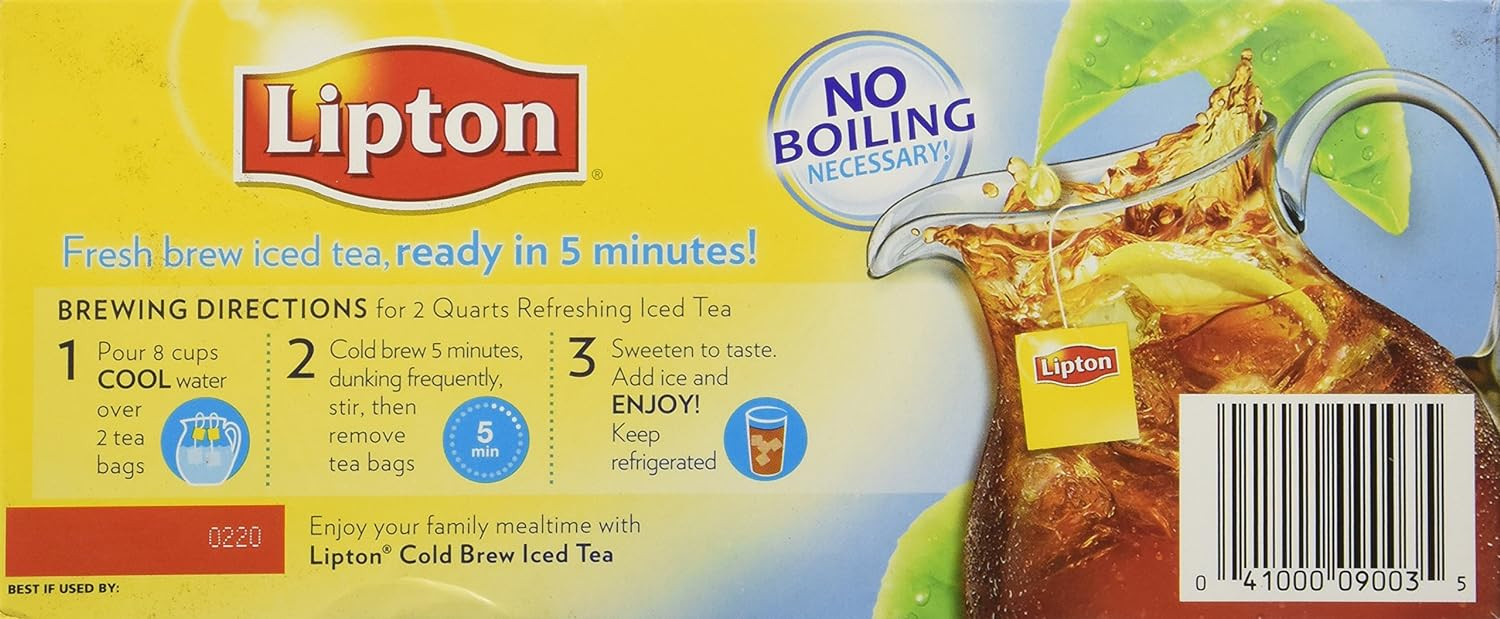 With these convenient family-size bags, you can easily brew crisp, refreshing Lipton black iced tea! Our Master Blenders created this refreshingly delicious blend using real tea leaves specially blended for iced tea, where we pick tea leaves at the peak of flavor and blend them to capture as much natural tea taste and aroma as possible. Because it is naturally tasty and refreshing, Lipton iced tea is an excellent addition to any meal. Don't settle for the ordinary; instead, enjoy the superior taste of freshly brewed tea by selecting Lipton Cold Brew Unsweetened Family-sized Black Iced Tea Bags.