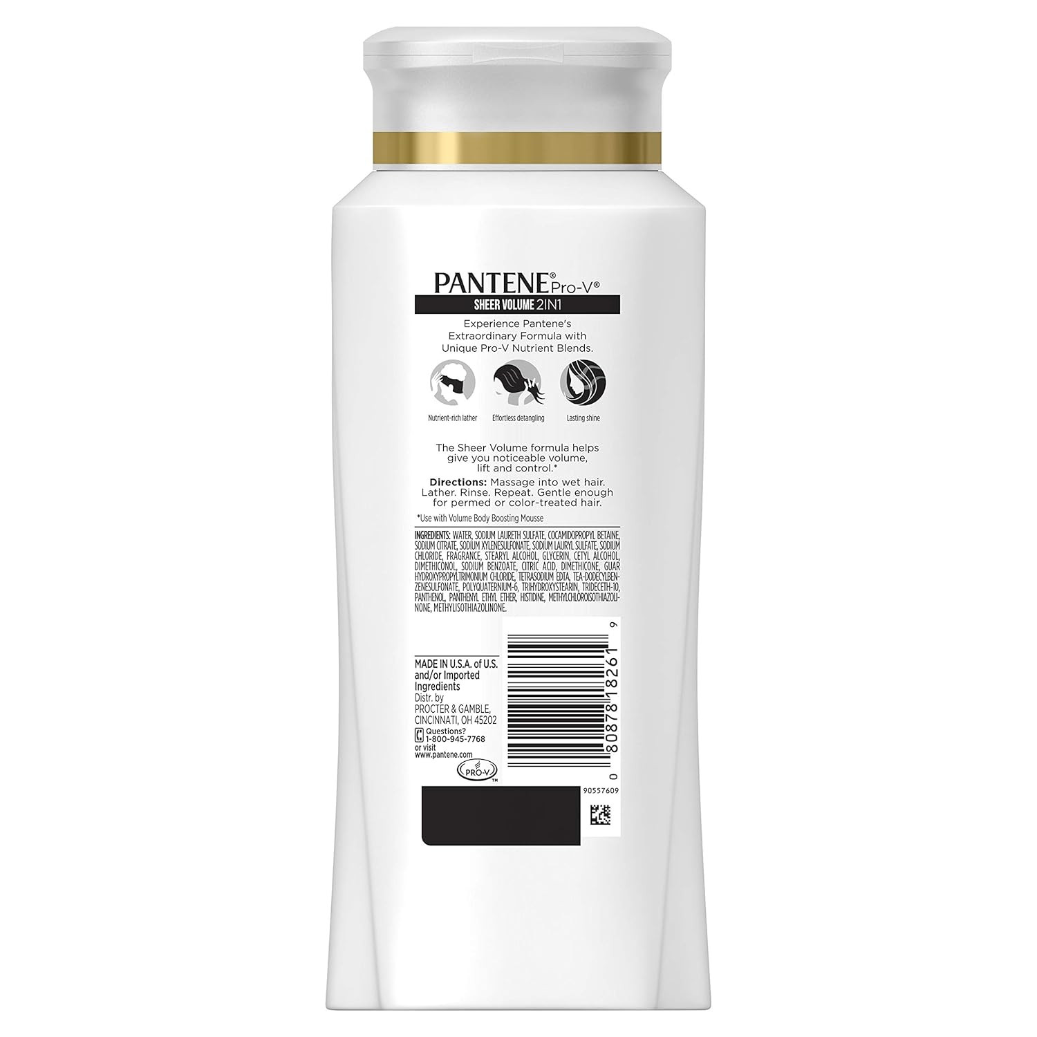 Pantene Pro-V Sheer Volume 2 in 1 Shampoo & Conditioner will give your hair a boost in a single step. This potent Pro-V formula contains micro-moisturizers that wrap around each strand for easy detangling and long-lasting shine. Massage this nourishing lather into your hair, then rinse for instant volume, lift, and control.With Pantene Pro-V Sheer Volume 2 in 1 Shampoo & Conditioner, you can experience the volume.Use in conjunction with Volume Body Boosting Mousse.
