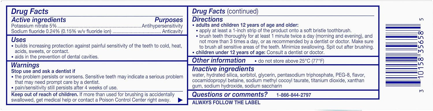 Sensodyne Extra Whitening Cool Mint Sensitive Teeth Whitening and Cavity Prevention Toothpaste is a daily protection toothpaste for sensitive teeth that is free of SLS and helps eliminate stains for a whiter look. With twice-daily brushing, this potassium nitrate and sodium fluoride toothpaste helps whiten teeth by removing surface stains and working deep within teeth to create calming protection around the nerves. This can reduce sensitivity in as little as two weeks. In addition to providing all the antibacterial and fresh breath benefits of conventional Sensodyne toothpaste, Sensodyne Extra Whitening Cool Mint toothpaste has a composition that lessens tartar accumulation for teeth that are cleaner, smoother, and healthier. Use this whitening sensitive toothpaste in the morning and evening to experience relief from sensitivity and protection around-the-clock. Obtain long-lasting defense.