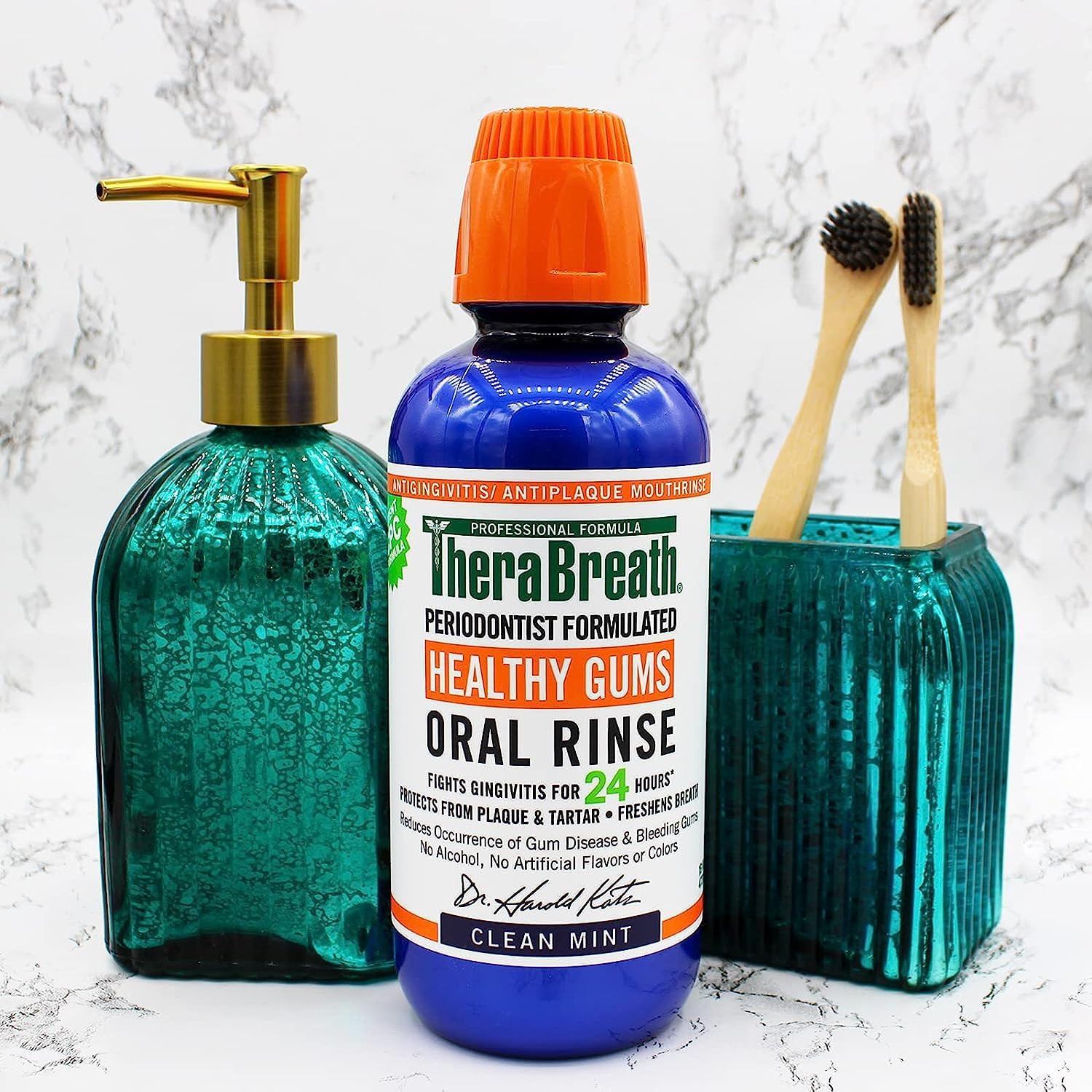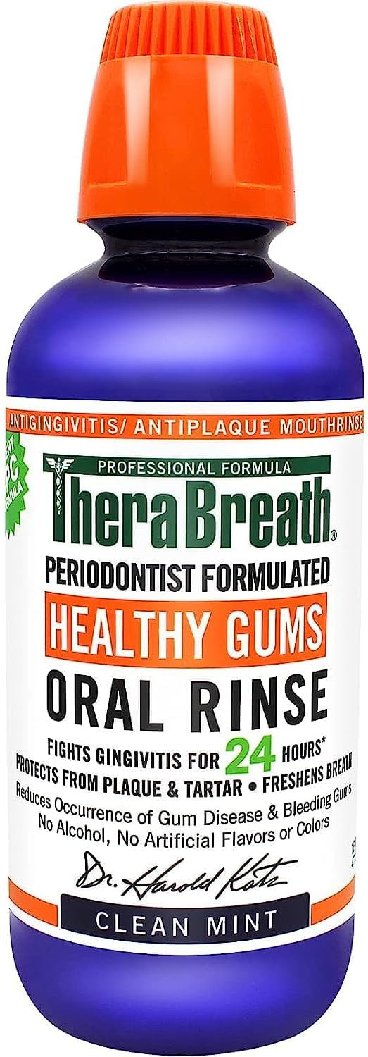 Fifty percent of adult Americans have gum disease, according to the CDC. Gums that are sensitive or bleed are signs of gum disease. Gum disease that is advanced enough can cause tooth loss. Thankfully, TheraBreath Healthy Gums Mouthwash helps you maintain your perfect teeth by lowering the risk of gum disease and bleeding gums. This mouthwash helps manage the plaque that causes gingivitis and bleeding gums. It is enhanced with CPC, an FDA-approved chemical that has been clinically shown to help combat gingivitis. Periodontists recommend using CPC. Dentist-formulated, alcohol-free TheraBreath Healthy Gums Mouthwash helps freshen breath without burning or irritating. We are so sure that TheraBreath Oral Rinses work that we stand behind them with a 100% guarantee