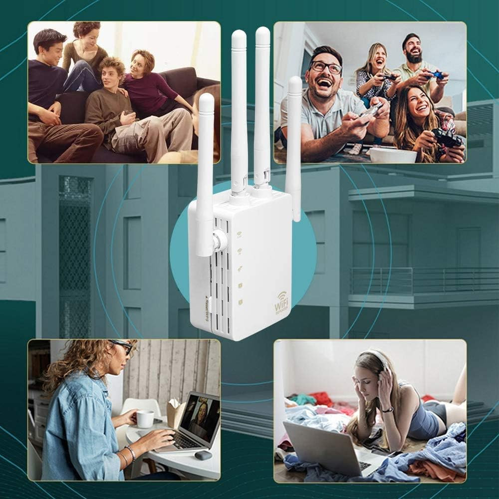 WiFi Extender - WiFi Repeater, WiFi Booster Covers Up to 2500 Sq.ft and 30 Devices, Up to 1200Mbps Dual Band WiFi Repeater with Ethernet Port, Wireless Signal Booster for Home.